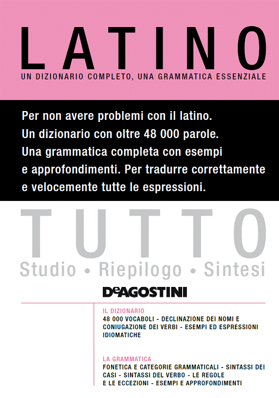 Benvenuti nel Dizionario Latino, il più grande e più completo Dizionario Latino online con annesso declinatore e coniugatore. Il vocabolario latino è consultabile gratuitamente: non esitate a comunicarci i vostri commenti e le vostre impressioni.